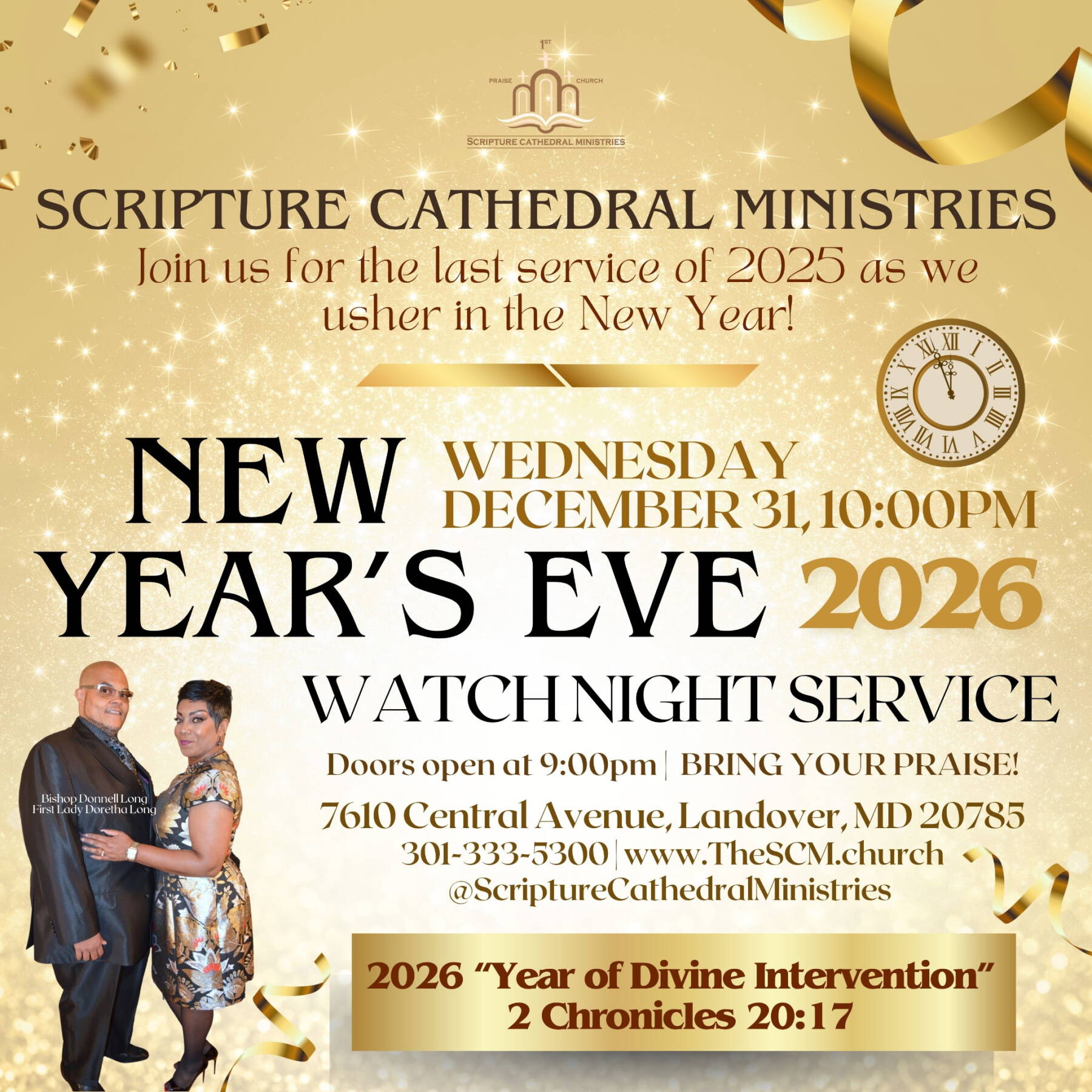 You are welcome to help us ring in the new year as we close out 2025 and praise and worship into 2026 in our powerful and anointed New Year's Eve "Watch Meeting Service". Make plans to join us during this last service in 2025. You will be blessed!